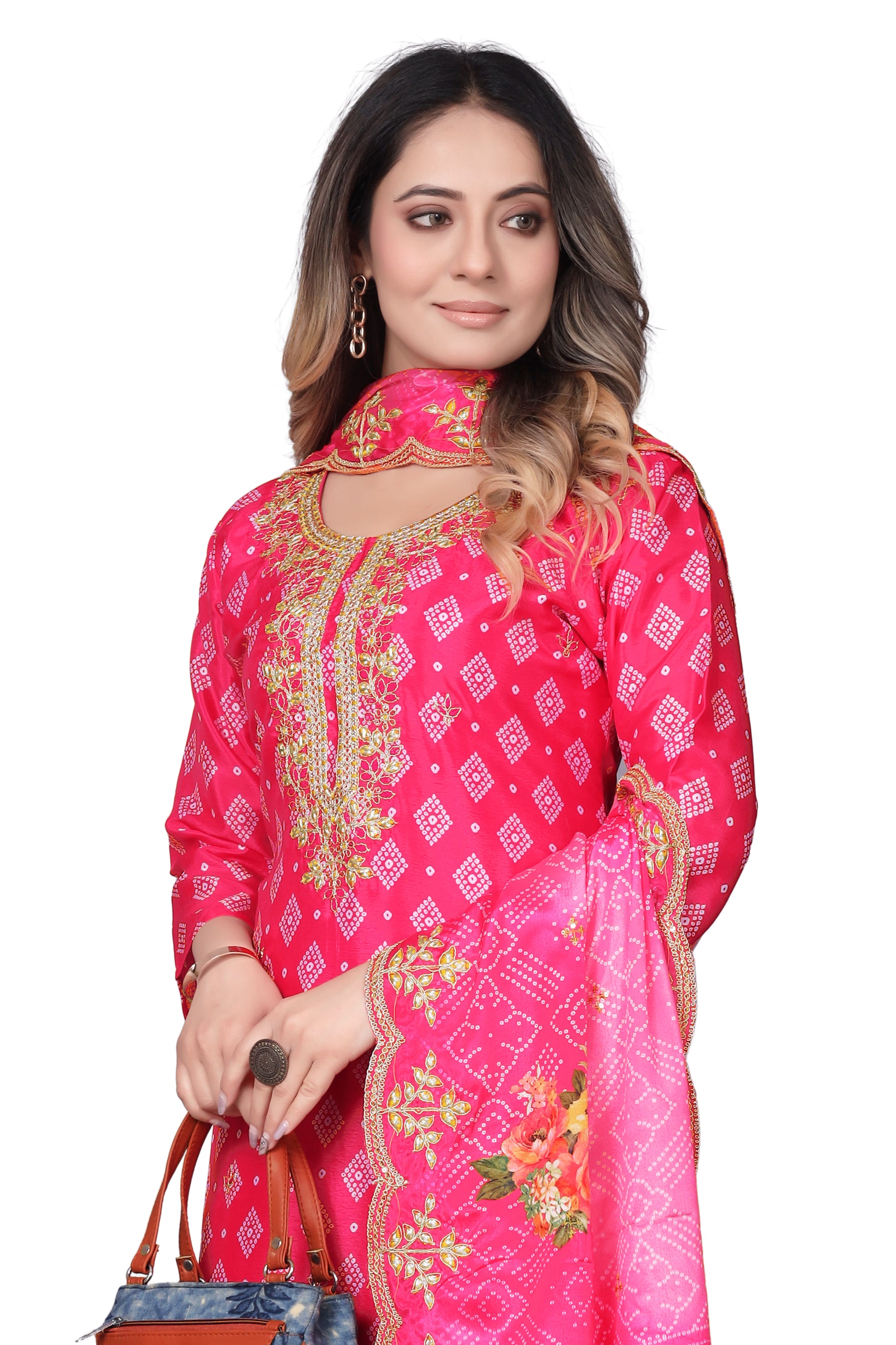 Step into elegance with this beautiful Pink 3-piece kurta set, designed to add charm to your ethnic wardrobe. The set includes a printed straight-cut kurta with a delicately embroidered neckline, paired with a solid matching palazzo pant and a coordinated printed dupatta with floral detailing. Perfect for festive occasions, family gatherings, or casual outings, this outfit combines tradition with modern flair.